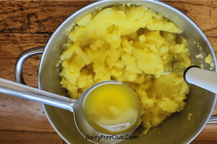 - Mash the potatoes with olive oil and cooked water into a creamy purée.